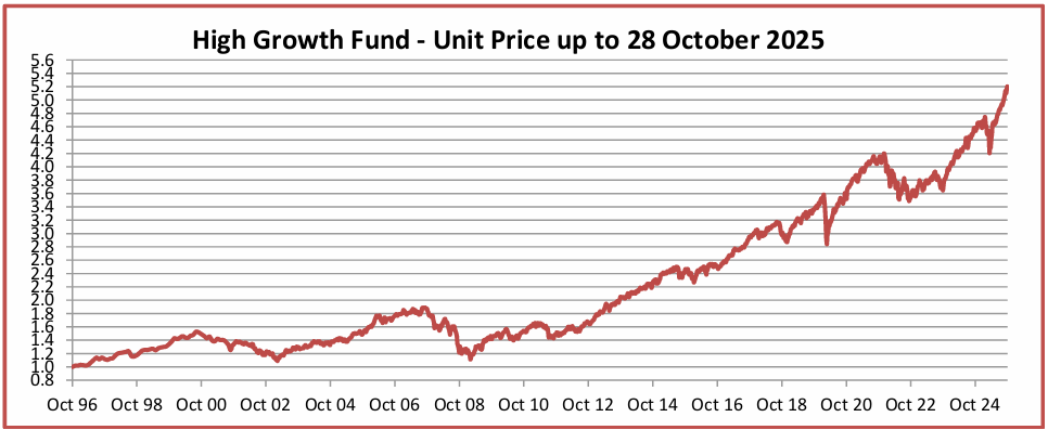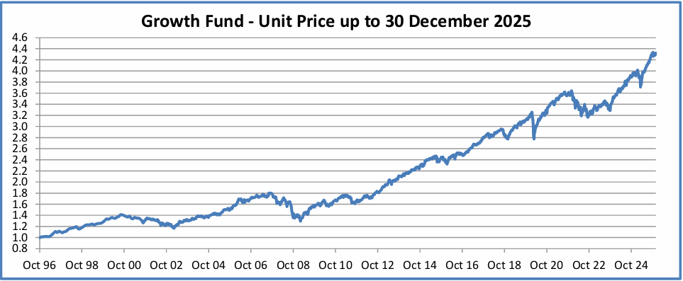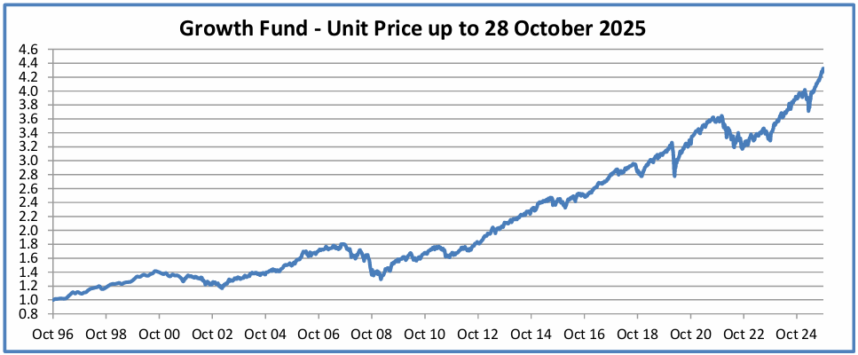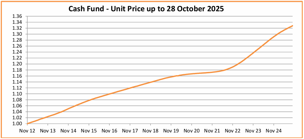 The graphs below show the unit prices for each investment fund over time. (Please note that due to limited space, the labels on the graphs only appear at October each year - however, the line showing the unit price extends beyond October to the latest date for which rates are available (see table above.)